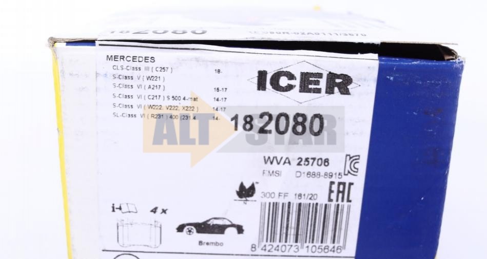 Комплект гальмівних колодок (дискових) ICER 182080